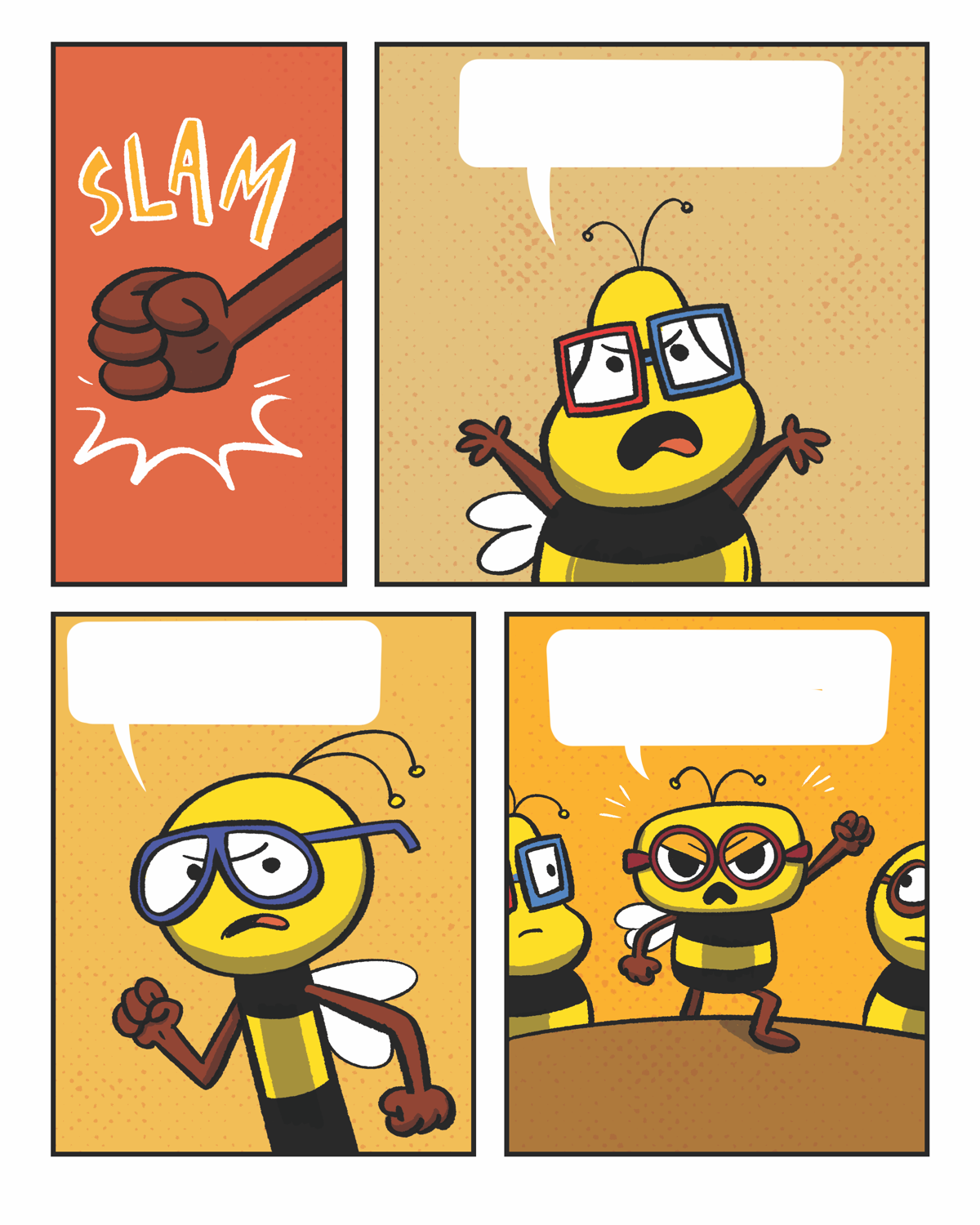 Above: sample comic pages from "Bees in Action." written by Armond Wilbourn.